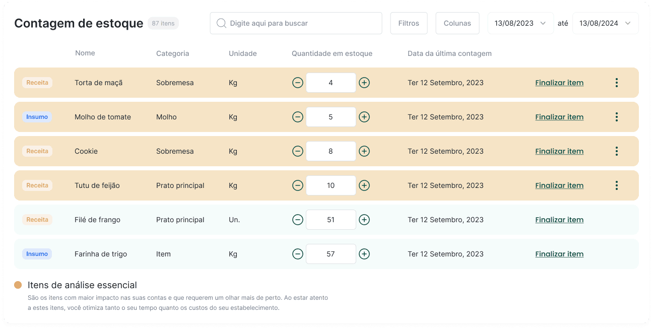 Acompanhe por período, categoria ou item, com dados atualizados em tempo real.